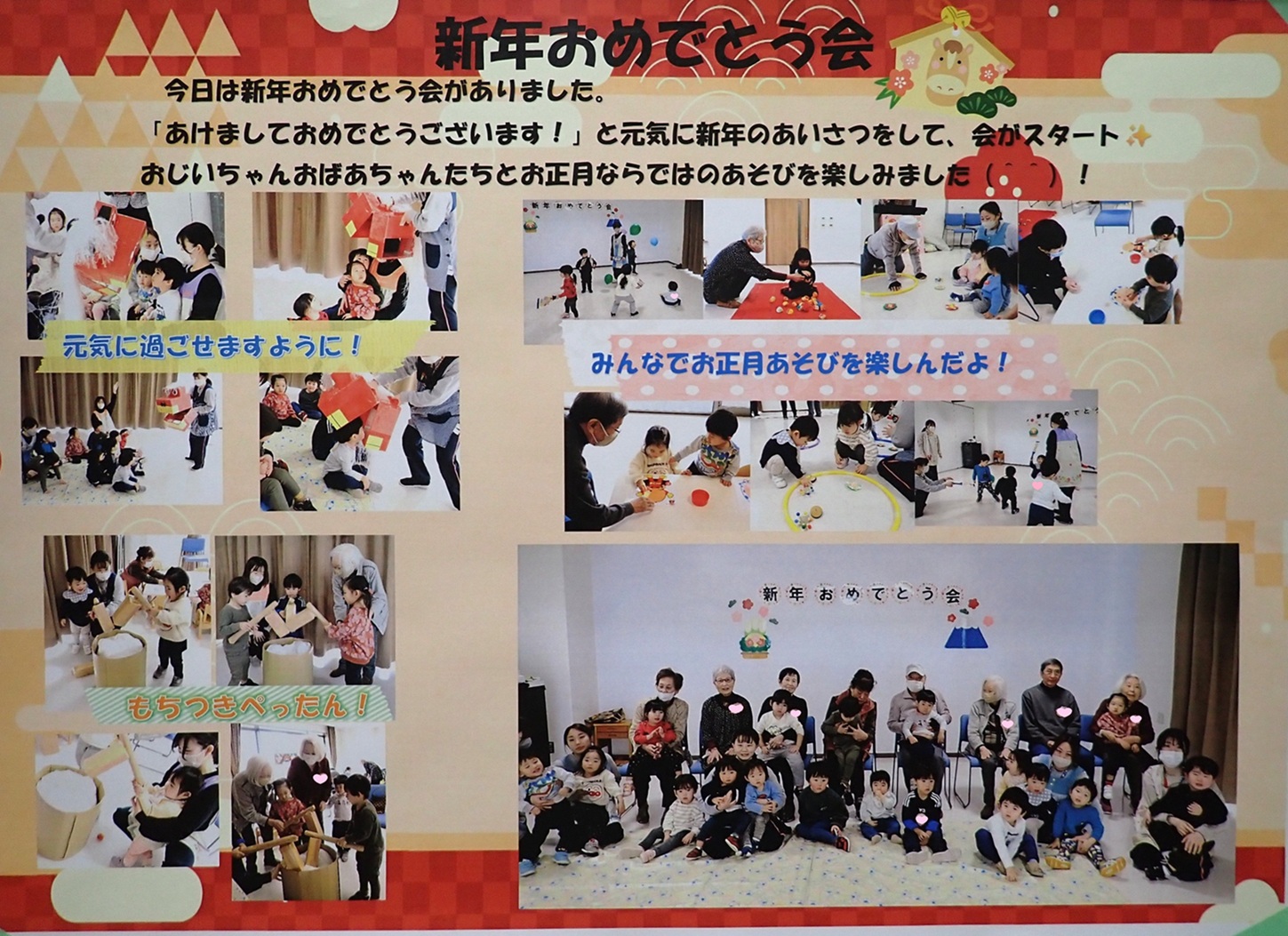 「新年おめでとう会」ではケアハウスのおじいちゃん・おばあちゃんと、たくさん遊びました(*^▽^*)