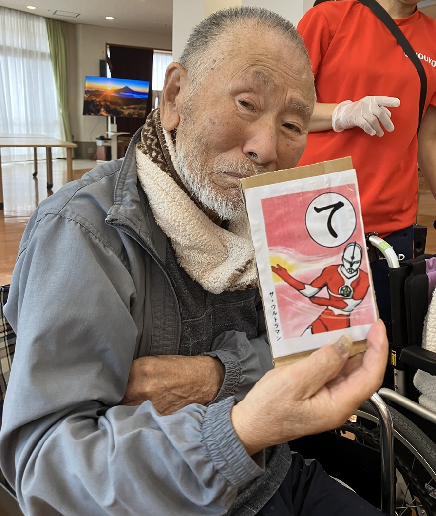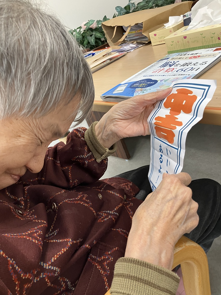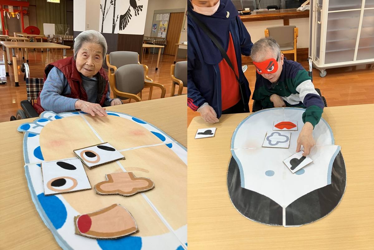 その後は正月レクリエーションで福笑いとかるた大会を実施!