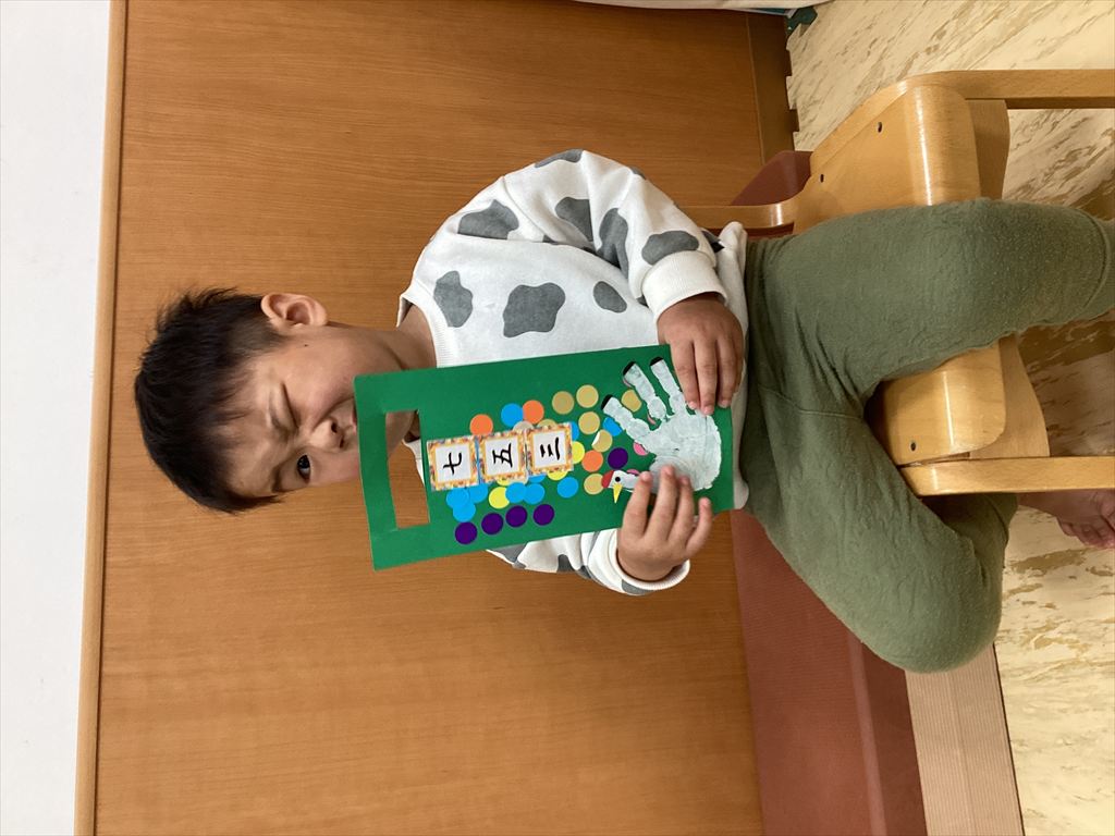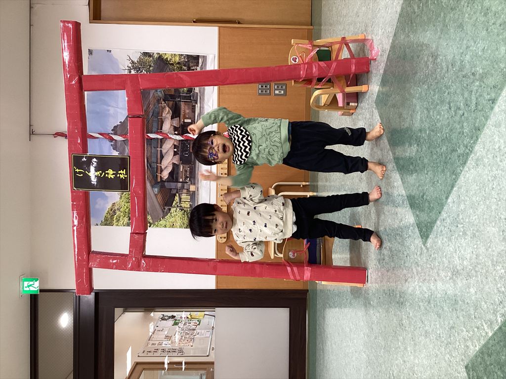 ぞうぐみ(2歳児)は753ということで、保育士お手製のげんき神社にて、大きくなったことを喜び、これからの健康を願い参拝しました!(^^)!