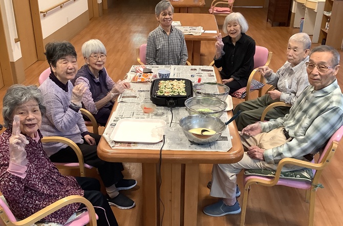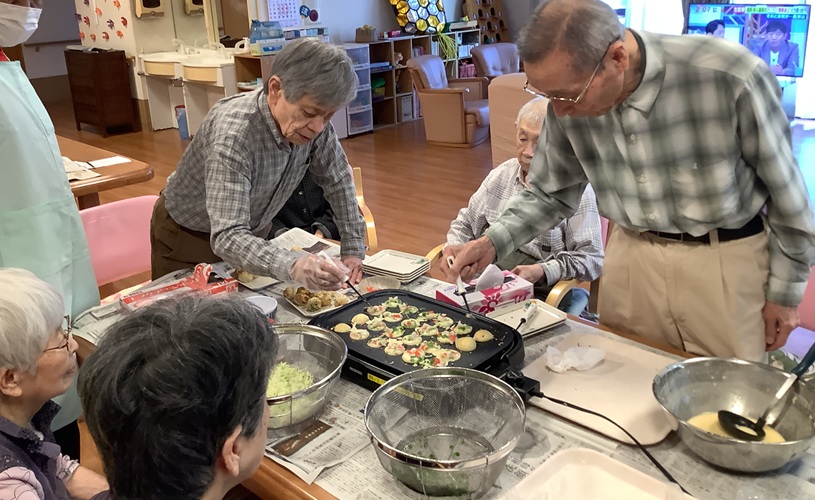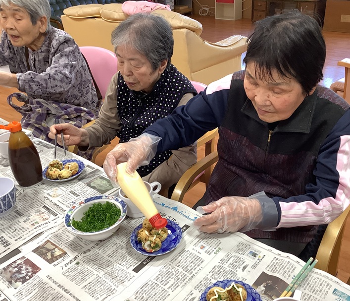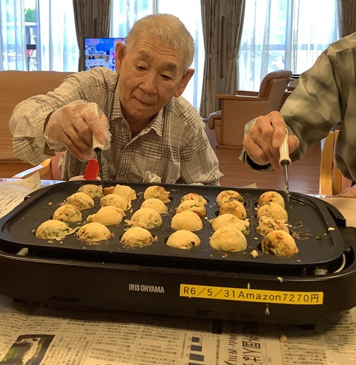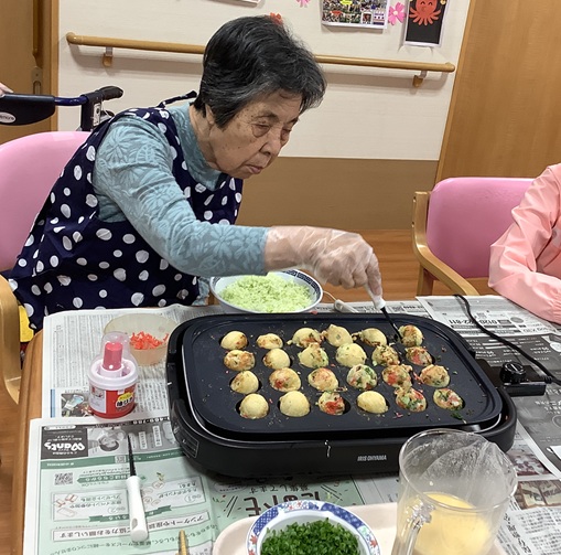 『食欲の秋』を迎え『グループホームげんき馬木』では、10月23日(木)『お楽しみ会』行事として『たこ焼き作り』をみんなで行いました。