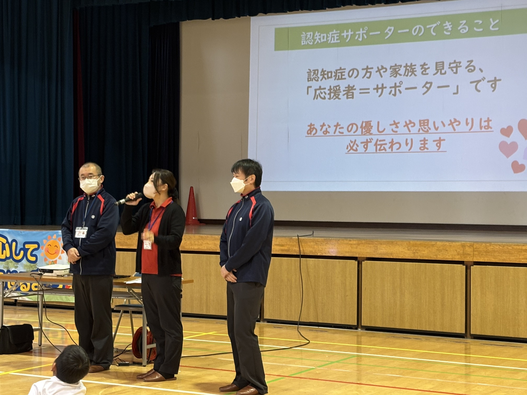 受講後のアンケートでは、「忘れる病気とは知っていたけど、認知症についてよく分かった」「優しくしたら進行が遅くなると勉強したので、優しくしたい」「認知症で困っているお年寄りがいたら手助けしたい」「理解と協力が大切と思った」等、沢山の温かい感想を頂き、大変嬉しく思いました。