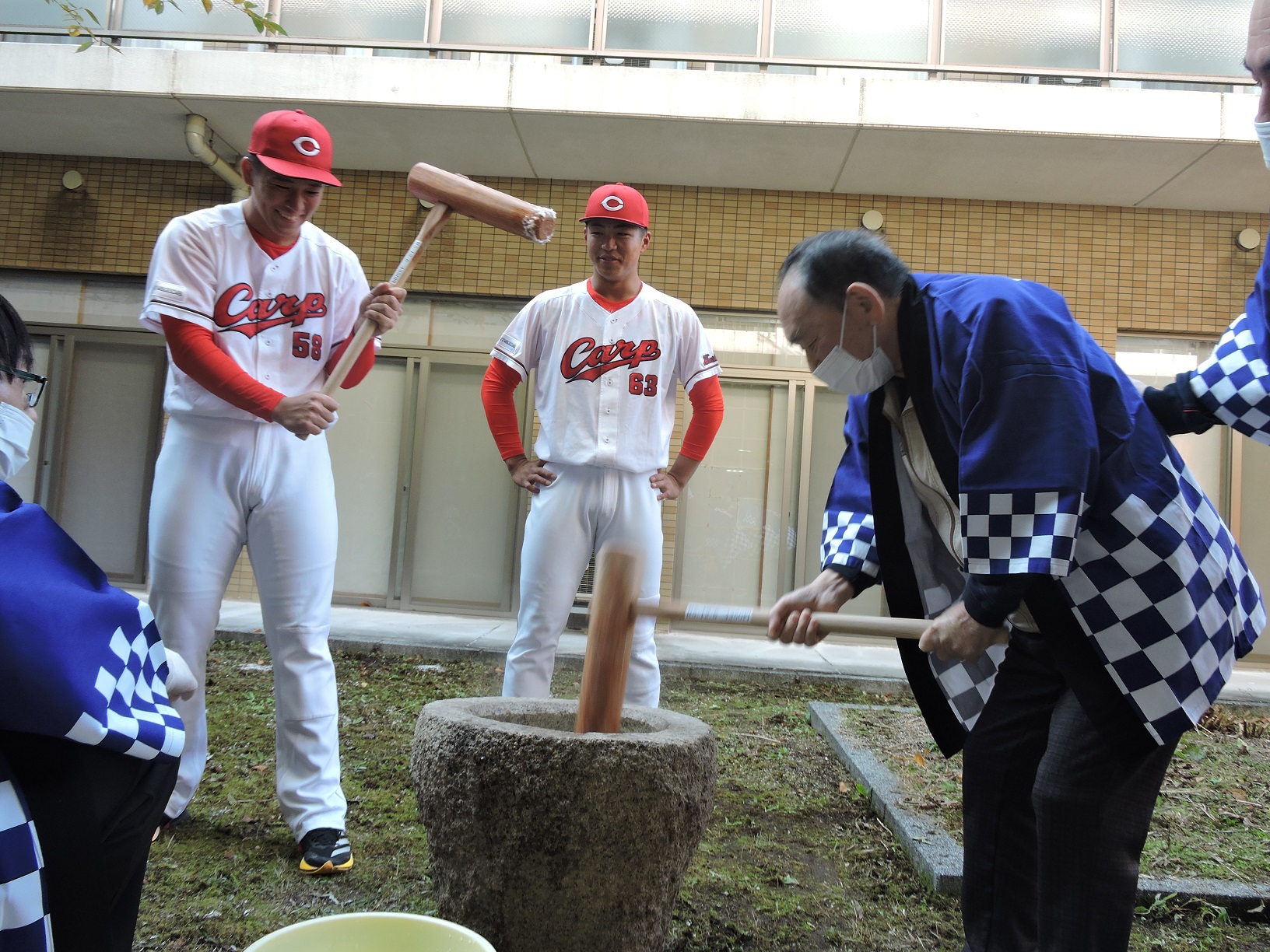 12月2日、広島東洋カープの内田湘大選手と仲田侑仁選手をお招きし、餅つき大会を開催しました!!カープ選手をお招きするのは実に4年ぶり!!
