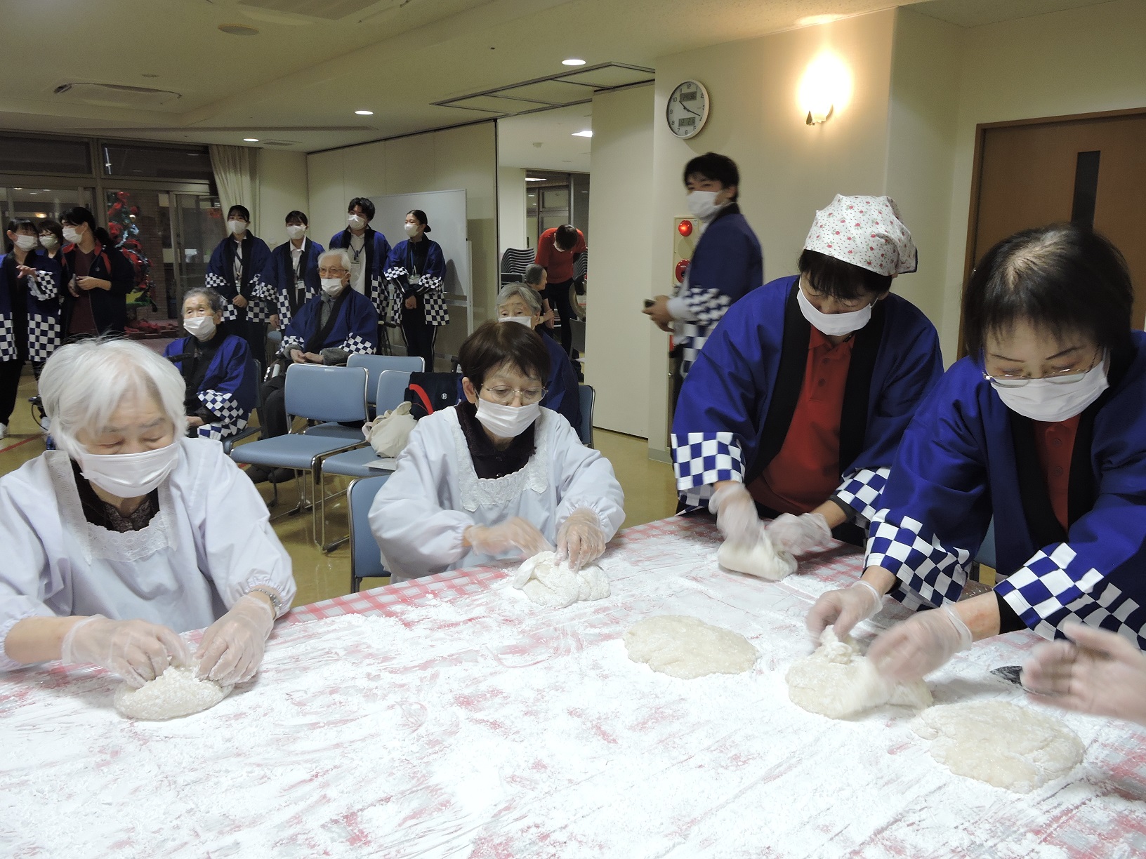 餅つきでは、「よいしょ!」と気合十分の大きな掛け声が飛び交う等大盛り上がり!ついたお餅は鏡餅にし、各ユニットの玄関などに飾りました!