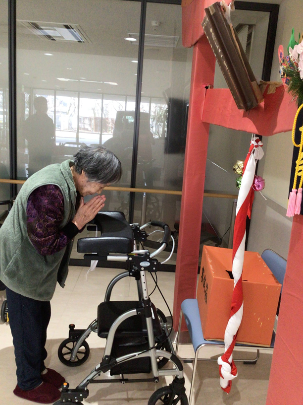 おりづる神社へ!!三が日には、福笑いを行ったり、おりづる神社へ初詣に行かれたりと正月ならではの時間を過ごしました!福笑いでは、出来上がった表情に笑顔があふれ、利用者様の楽しそうな様子に職員も一緒になって和やかなひと時を過ごすことが出来ました!初詣では、新たな一年の願いを込めてお参りし、絵馬も奉納しました!