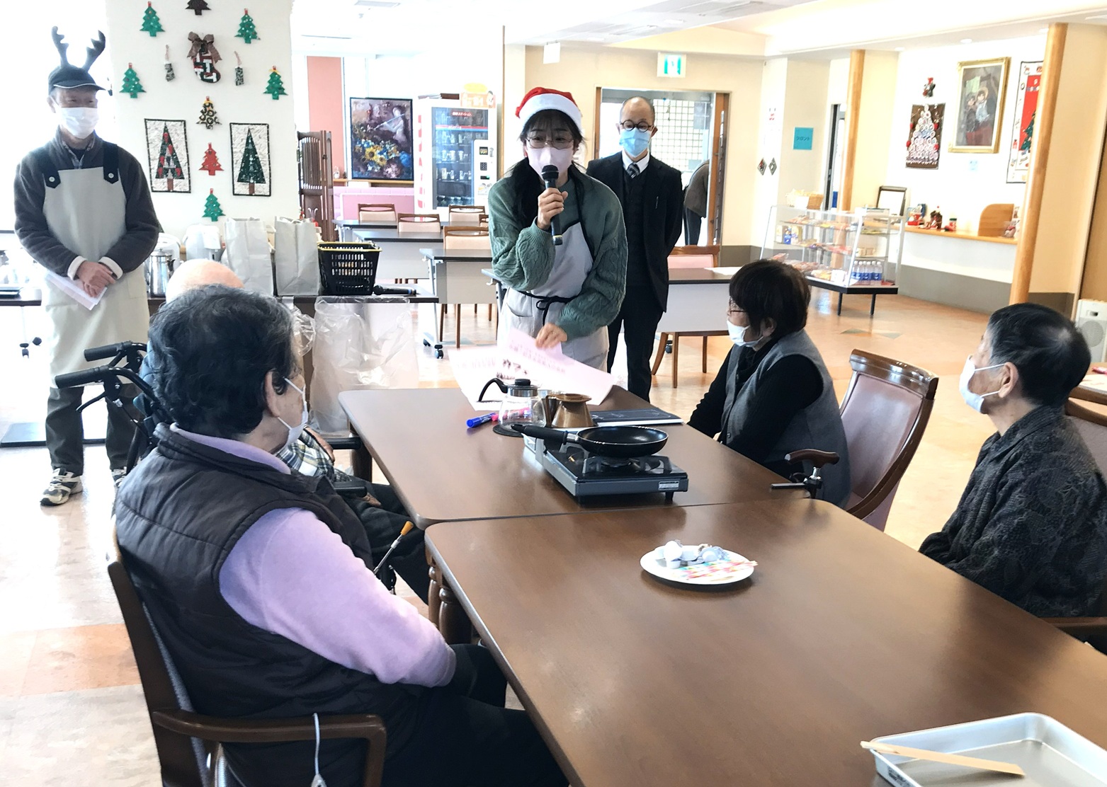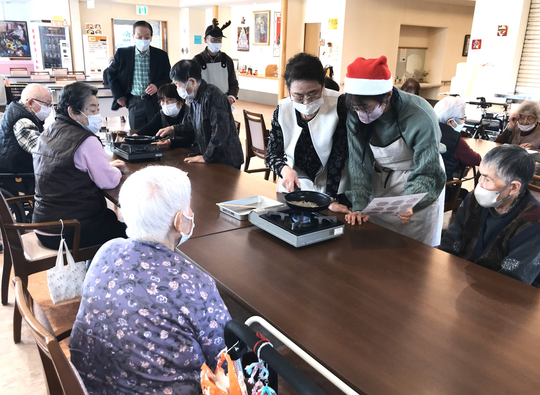 クリスマス間近ということで、お手伝いいただく皆さまはサンタやトナカイの衣装で登場!賑やかで楽しい雰囲気の中、総勢24名の入居者さまが参加されました。