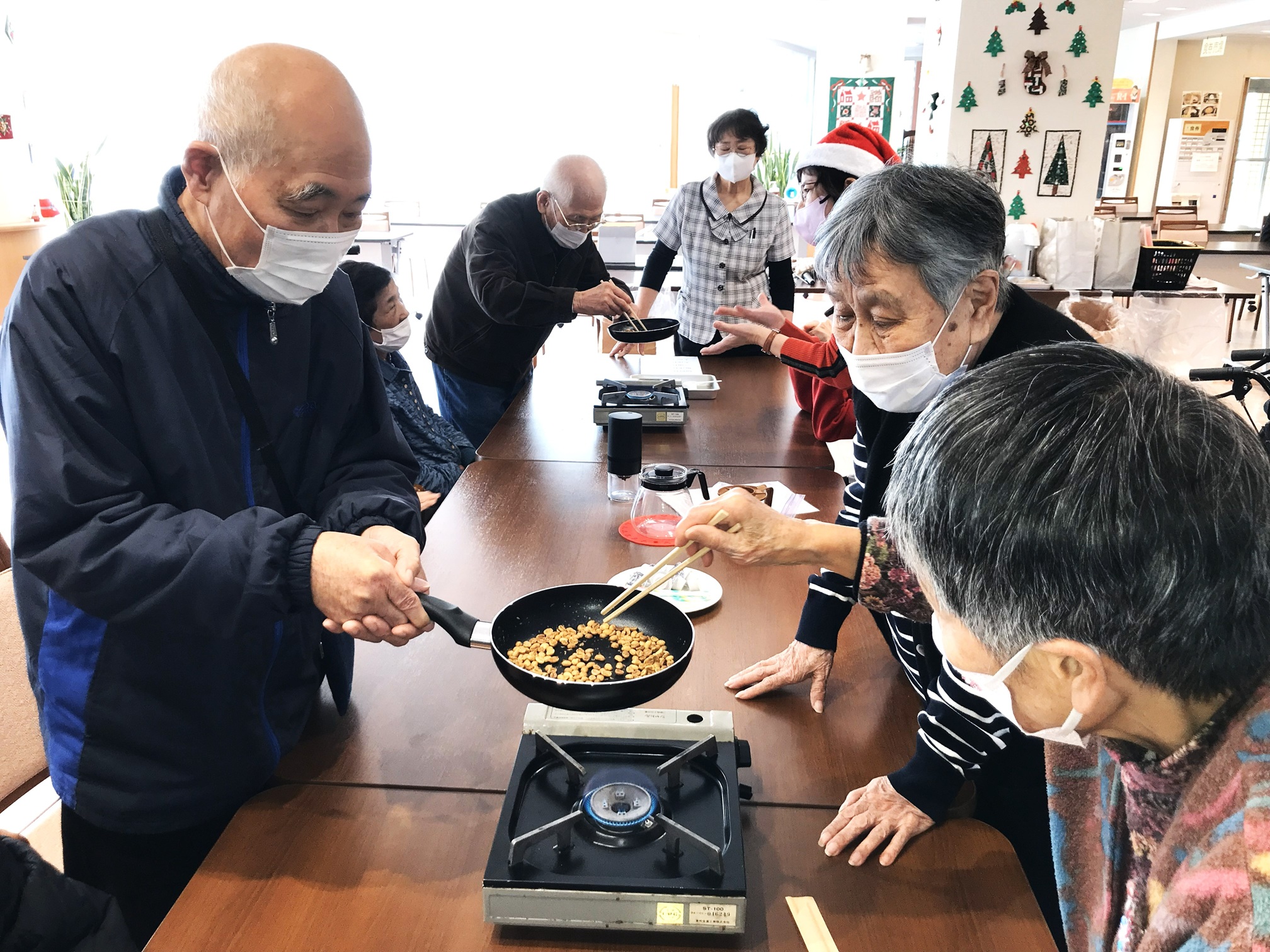今回も、元民生委員の野村さんを講師にお招きし、本格的なコーヒーづくりに挑戦!さらに、民生委員の仲井さん、社会福祉協議会の阿部さん、福田公民館の神笠さんという、地域の心強い皆さまがチームで応援に駆けつけてくださいました。