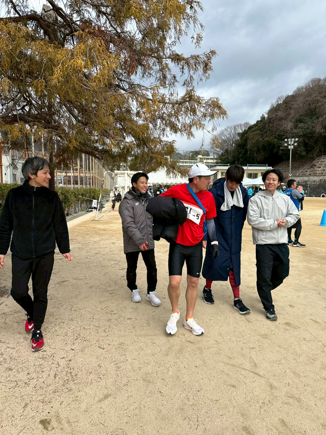 残念ながら欠席の柿木田理事長の代わりに、初参加の新鋭を加えた広島常光福祉会の5人が疾走。
