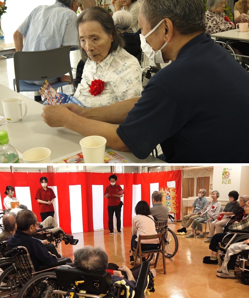 2日間に分けて敬老会を開催しましたが家族様の参加もあり、ここ数年では一番にぎやかな会になりました。
