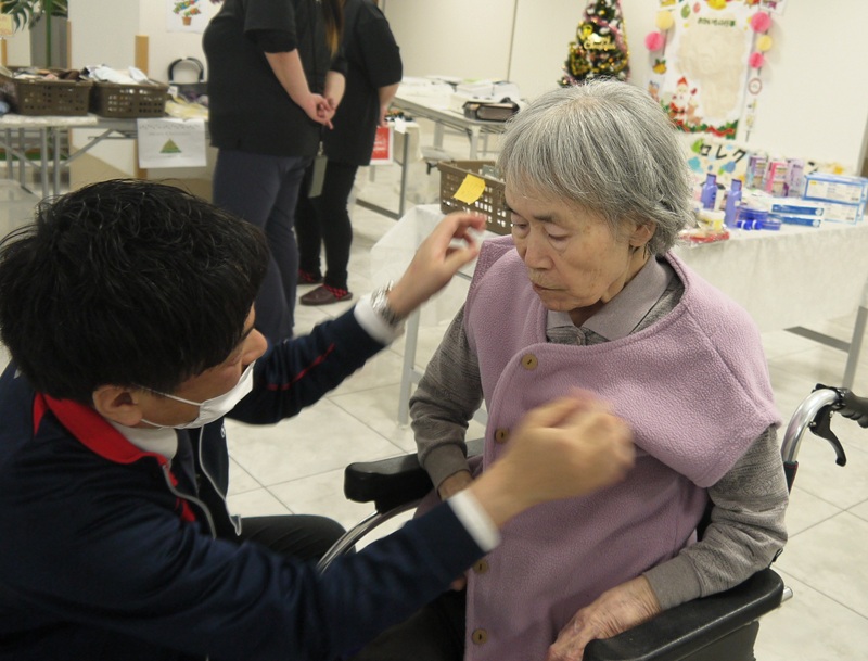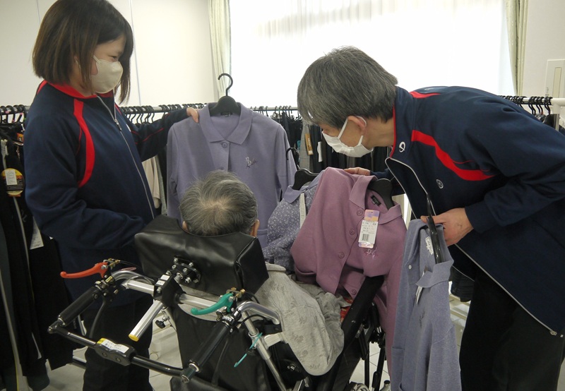 お買い物会場に入ってこられ、いろんな商品が並んでいるのを見て、パッと目が輝いた利用者の皆様。