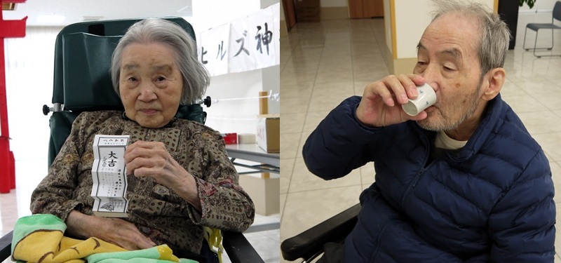 獅子舞との交流を楽しんだり、おみくじをひいて今年の運勢を占ったり、甘酒を飲んだりして新たな年を笑顔でスタートしました。