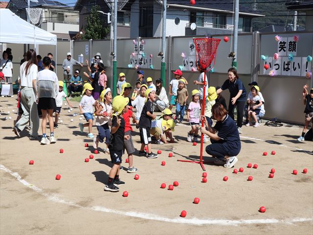 親子競技は、親子対抗玉入れ!動物なりきりリレー!