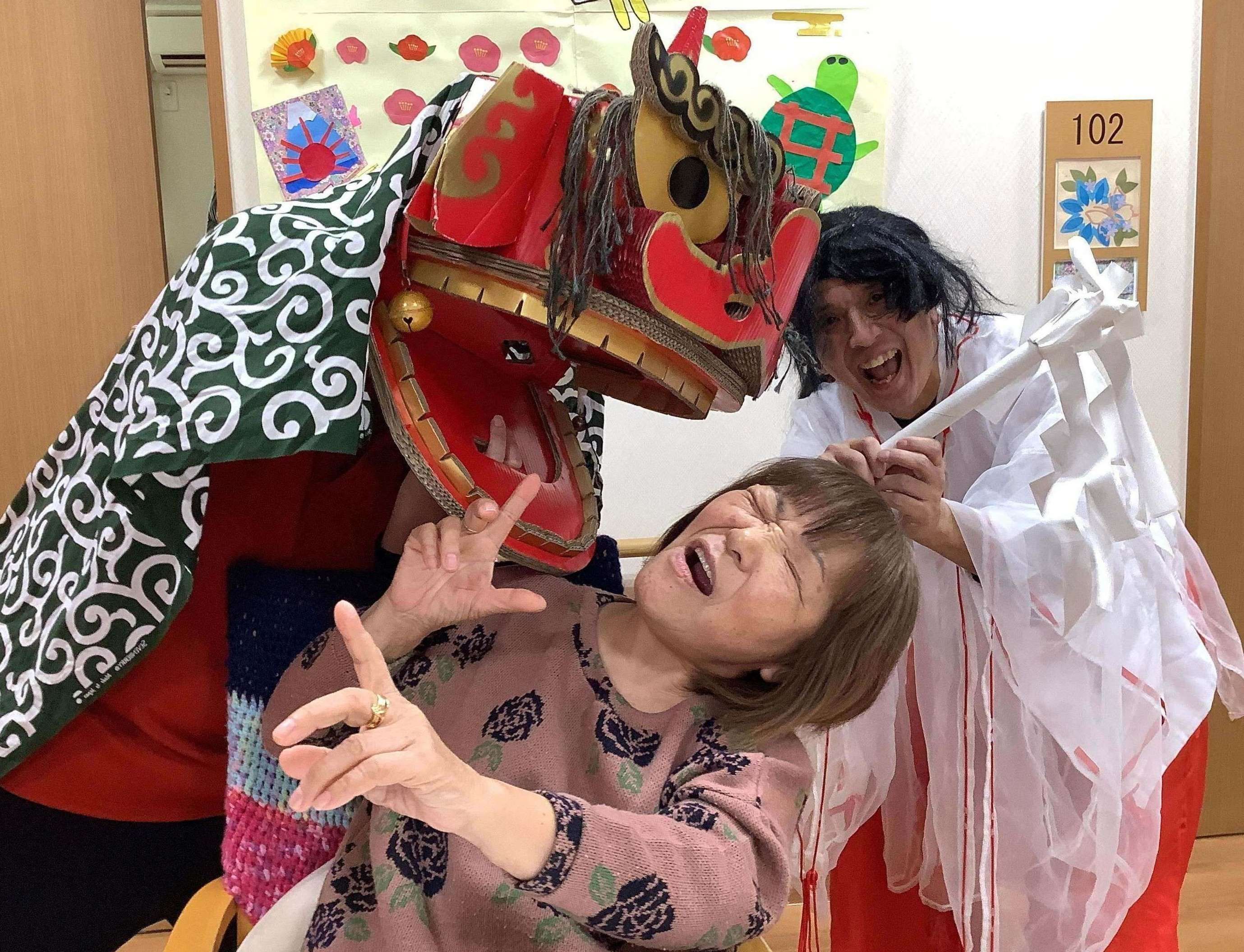 絵馬に願い事を書いたり、獅子舞の登場で皆さんとても良い笑顔でした。
