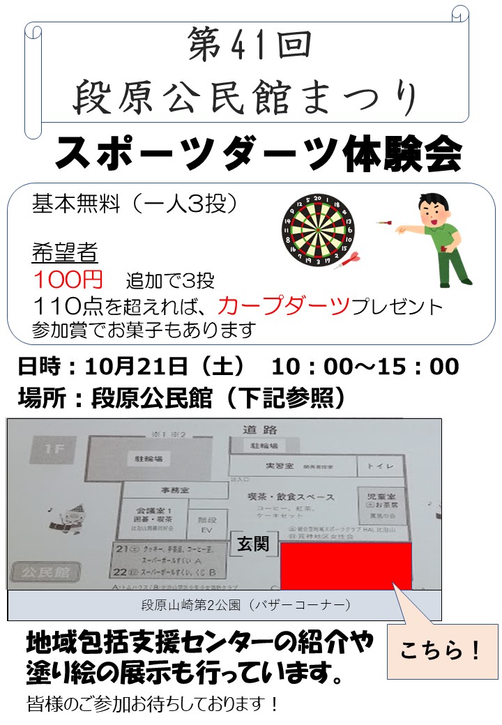 10/21(土)には段原地域包括支援センターも出店し、スポーツダーツ体験会を行います。