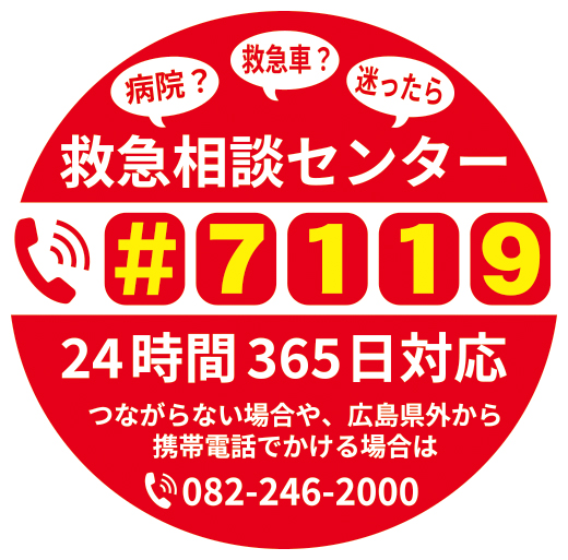 「病院が分からない」「すぐ病院に行くべきか分からない」などというときに便利なのが「救急相談センター広島広域都市圏(#7119)」です。