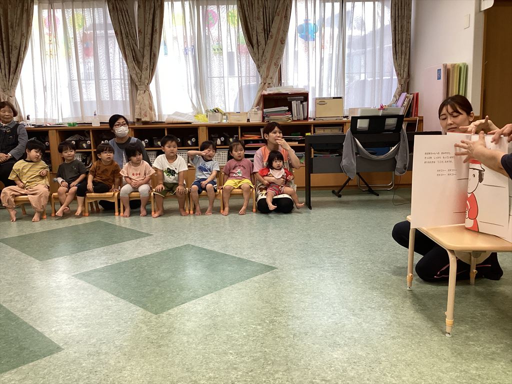 今年度3回目ということでだいぶ緊張がほぐれたように思いました。季節のうたを歌ったり、子どもたちの手作りしおりをプレゼントしたりと楽しいひと時を過ごしました(≧▽≦)