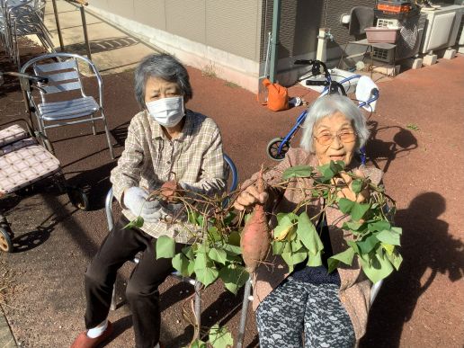 利用者様の中には、以前畑をされていた方もおり、育て方や掘り方の知識を発揮し見事に掘り当ててもらいました!