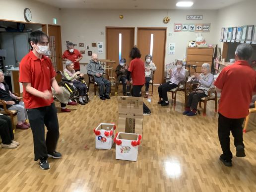 お菓子つかみ取りの後は、皆で炭坑節を踊ったり、村祭り、もみじやふるさと等の秋の歌を歌って盛り上がりました(^^♪