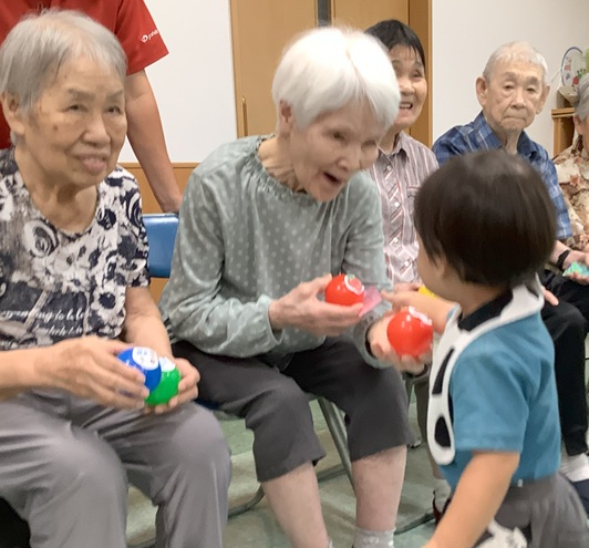 今年も『敬老会』前に、『げんき保育園』の園児達と『敬老の日の集い』でふれあいを大いに楽しみました。