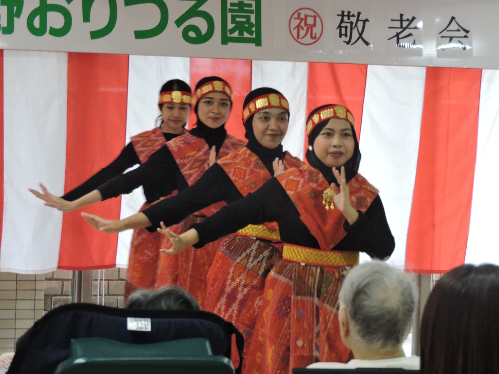 9月15日、敬老会が行われました!敬老会ではご長寿者様のお祝いと、職員による出し物や外国人実習生によるインドネシアの伝統の踊りを披露しました!会場では大いに盛り上がりました!!