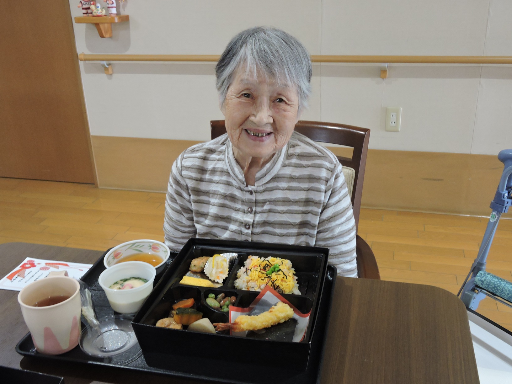 各ユニットで行われた食事会では、茶わん蒸しや天ぷらを召し上がられ「美味しいね!」「久しぶりに食べた!」と喜ばれ多くの笑顔を見ることができました!!