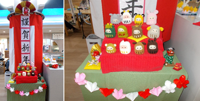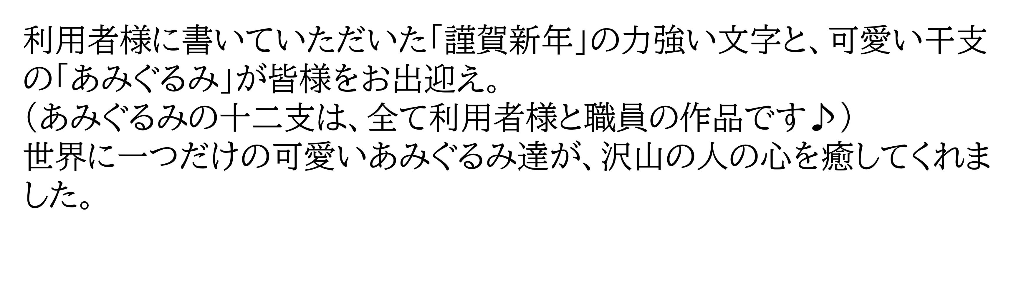 「午」の文字は、編み物が得意な利用者様の可愛い作品。