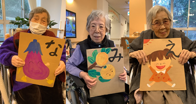 今年は、書初め、かるた、福笑いの三本立てで楽しみました。