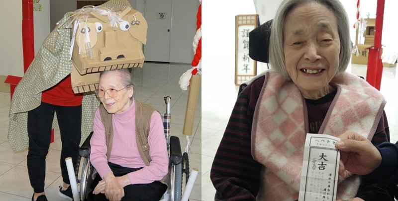 毎年、お正月になると1階の地域交流スペースにサンヒルズ神社の鳥居が出現し、利用者様が初詣をされるのが恒例行事となっています。